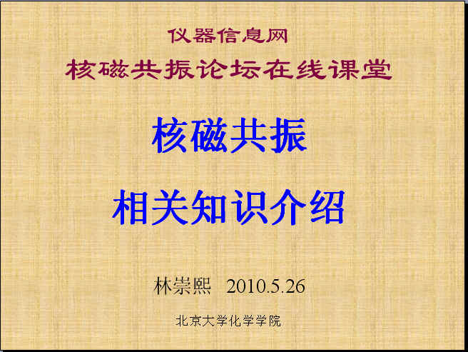 NMR Course: NMR 相关知识介绍| NMR 基本操作| NMR 解谱 (1) | NMR 在化学中的应用| 氘代试剂相关知识 | 实验室开放管理 | NMR 基本二维谱 | NMR 毛细管内标 |